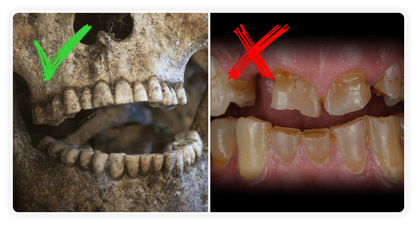 Archaeological studies consistently showed that hunter-gatherer groups had better oral health than we do today, despite having no modern dental care whatsoever.